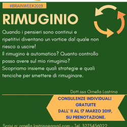 Il rimugino è un’ attività mentale, ripetitiva e pervasiva. I pensieri si affollano nella nostra testa e abbiamo la sensazione di non poter smettere, di non avere controllo su di loro. Ma cosa succede al nostro cervello quando rimuginiamo? Il rimugino consuma risorse mentali e ci mette in una condizione di allerta costante e malessere. […]